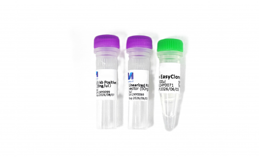 本产品为便捷无缝克隆试剂盒。试剂盒中包含优化的2× Easy clone连接预混液、pUC19 control vector(linearized,Amp +) 及500 bp control insert。基于载体和PCR片段末端的同源序列完成单片段或多片段无缝克隆重组,阳性率可达95%以上,是一款便捷、快速、高效的克隆试剂盒。其中2× Easy clone连接预混液经优化后同时适用于平末端和粘性末端连接,5min即可完成单片段或15min完成多片段重组。